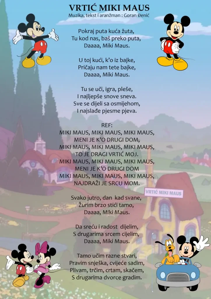 Са великом захвалношћу вама за вашу заинтересованост о раду наше установе, као и повјерењу које нам указујете, желимо вам успјешну адаптацију и добродошлицу у дружину Мики Мауса.